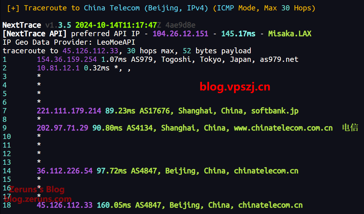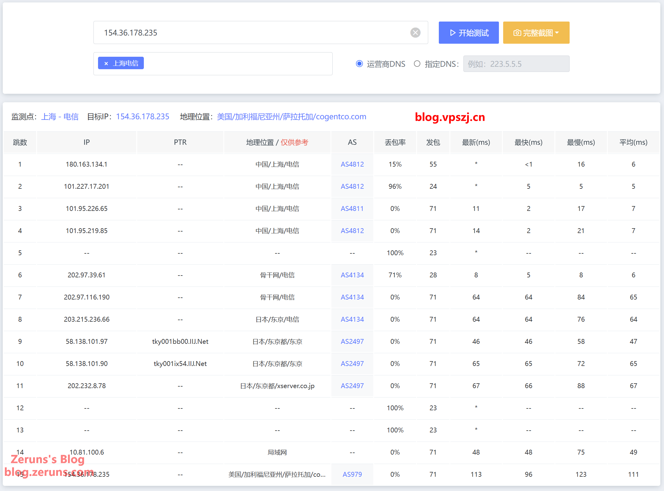 回程到北京电信,走电信163线路(AS4134)到上海再到北京。