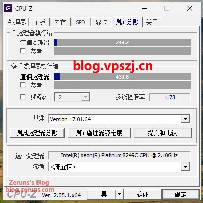 单核 249.2 分,多核 430.6 分,多线程倍率 1.73