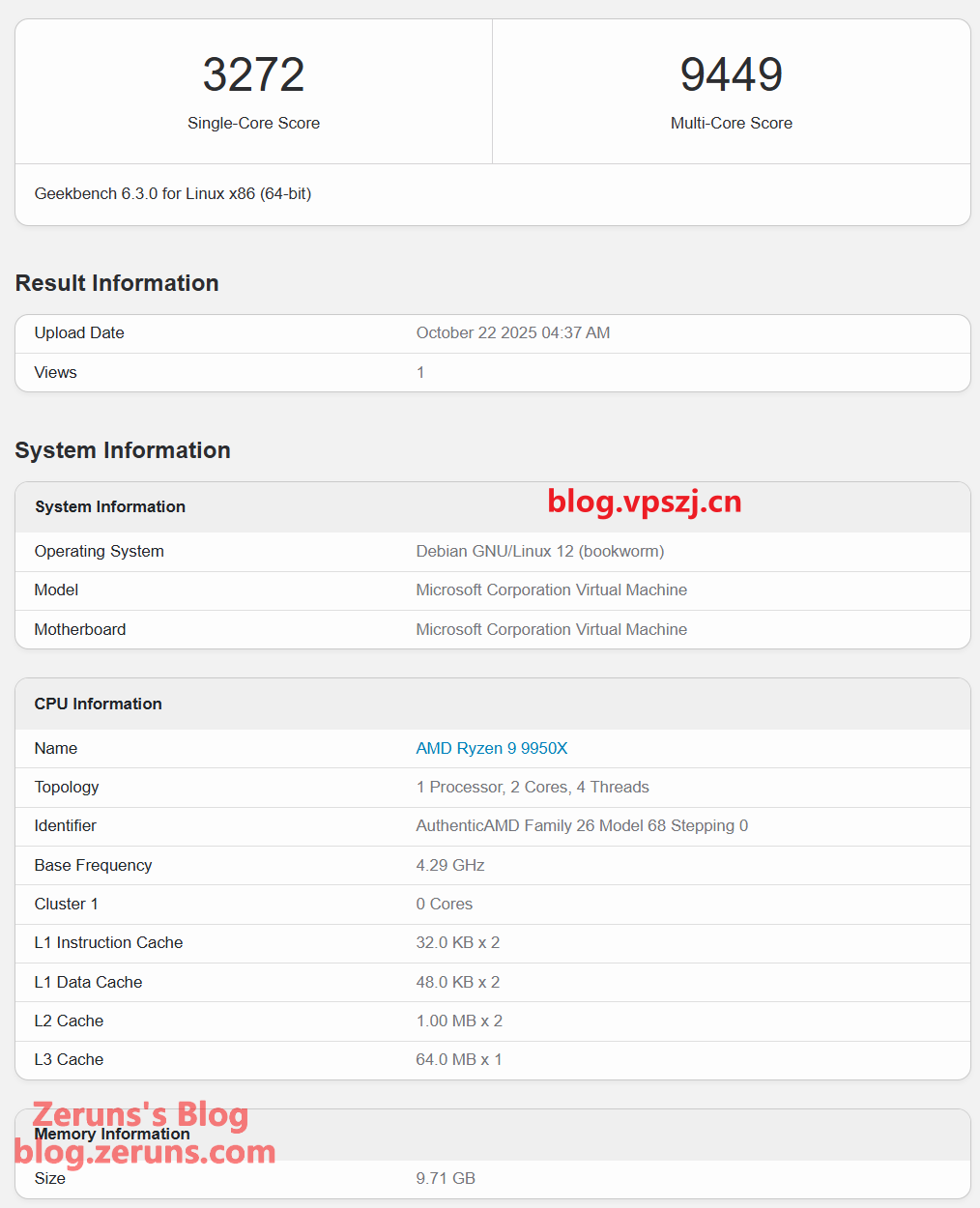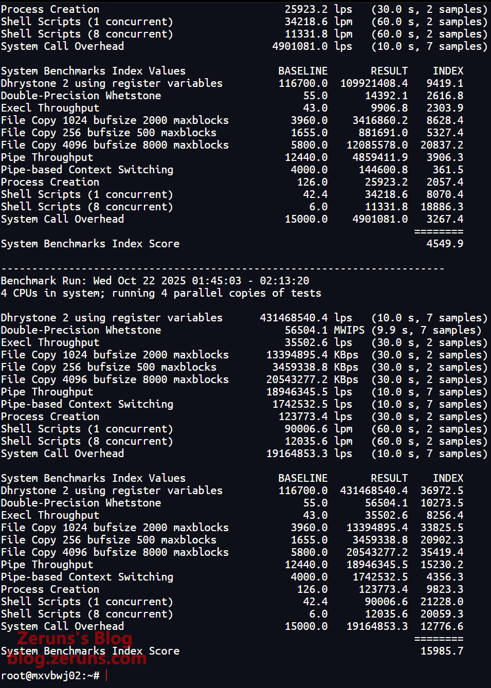 wget --no-check-certificate https://img.zeruns.com/down/Geekbench-6.3.0-Linux.tar.gz && tar xf Geekbench-6.3.0-Linux.tar.gz && cd Geekbench-6.3.0-Linux && ./geekbench_x86_64 # ARM版 wget https://img.zeruns.com/down/Geekbench-6.1.0-LinuxARMPreview.tar.gz && tar xf Geekbench-6.1.0-LinuxARMPreview.tar.gz && cd Geekbench-6.1.0-LinuxARMPreview && ./geekbench_aarch64