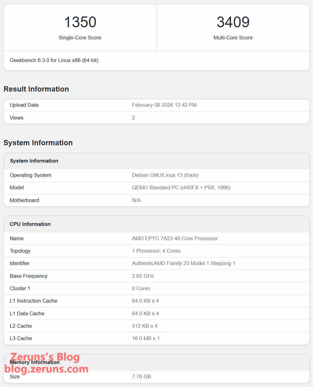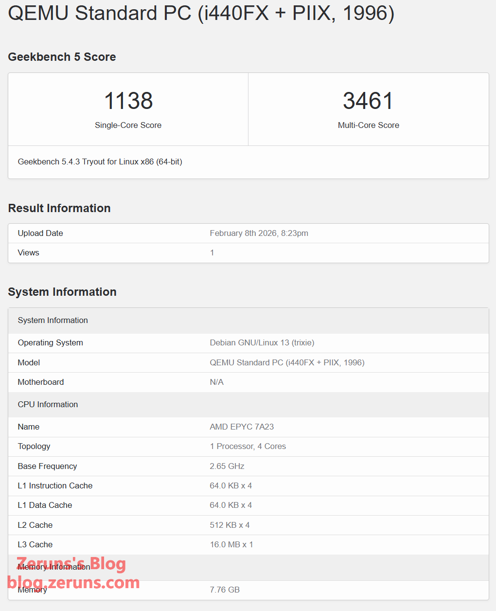 wget --no-check-certificate https://img.zeruns.com/down/Geekbench-6.3.0-Linux.tar.gz && tar xf Geekbench-6.3.0-Linux.tar.gz && cd Geekbench-6.3.0-Linux && ./geekbench_x86_64 # ARM版 wget https://img.zeruns.com/down/Geekbench-6.1.0-LinuxARMPreview.tar.gz && tar xf Geekbench-6.1.0-LinuxARMPreview.tar.gz && cd Geekbench-6.1.0-LinuxARMPreview && ./geekbench_aarch64