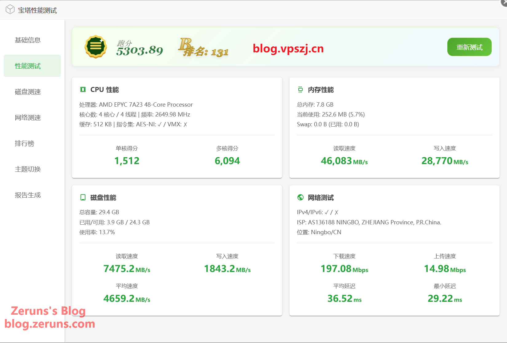 - 优惠注册地址:https://rain.zeruns.com/?s=vpszj