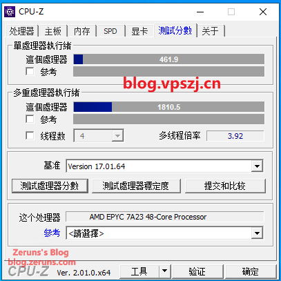 单核 461.9 分,多核 1810.5 分,多线程倍率 3.92